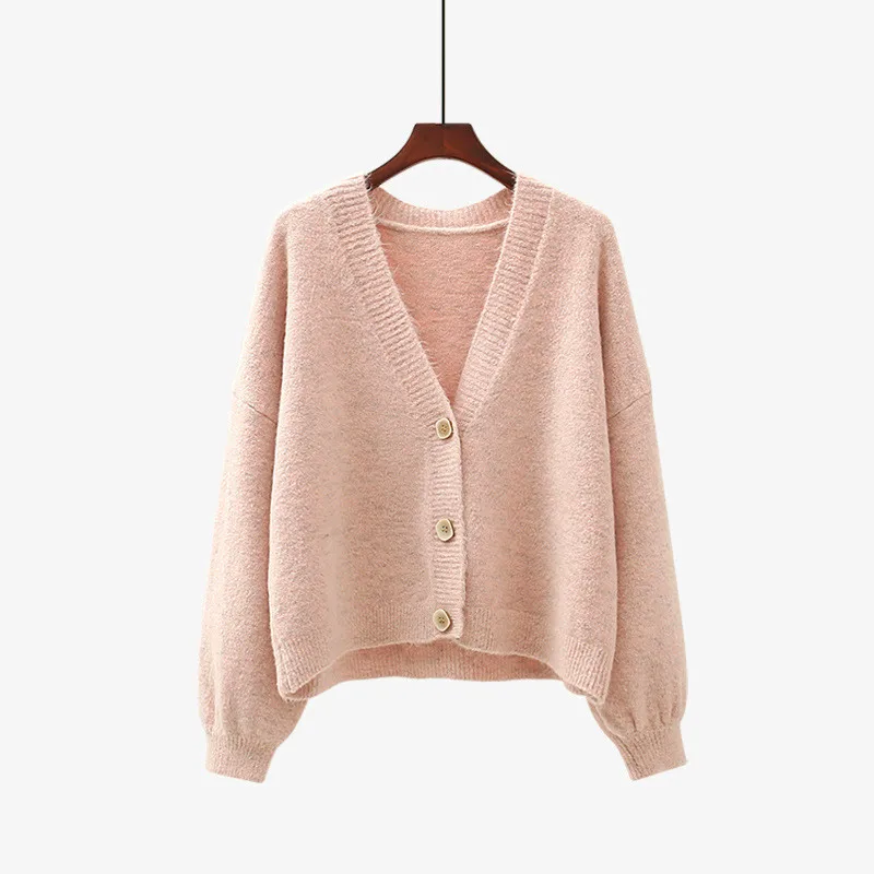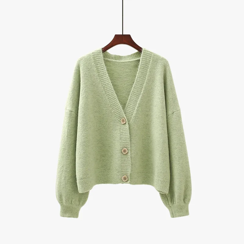Woolen Womens V Neck Button Down Cardigan Sweaters Lantern Sleeve Candy Color Pink Green Fall Classic Korean Cardigan Femme