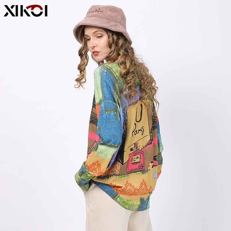 New XIKOI Winter Novel Print Sweater Women Pullovers Knitted O-Neck Jumper Women Oversized Warm Sweaters High Elastic Pull Femme