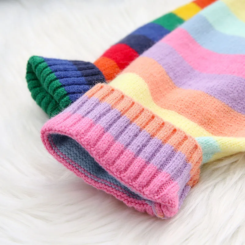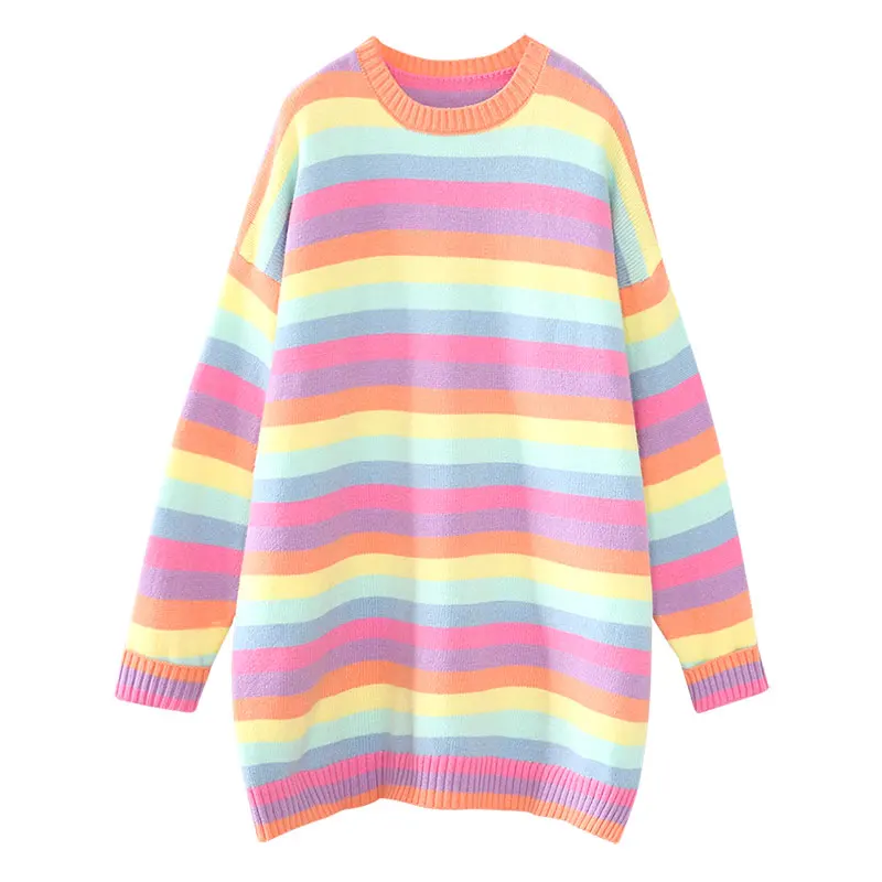 | rainbow colorful knitted pullovers for women 2019 autumn new female long sweaters loose striped elegant outwear pulls tops |