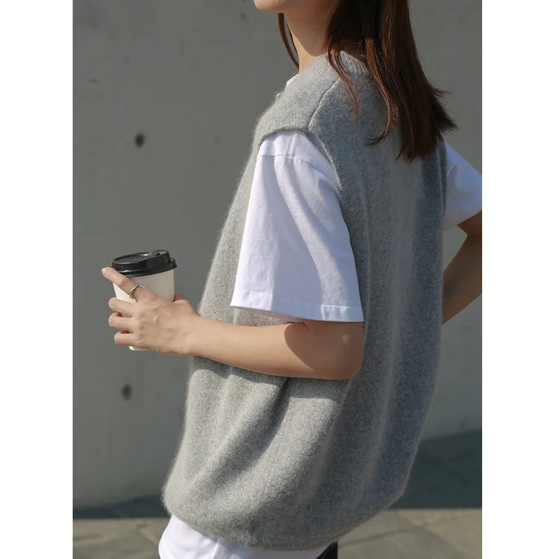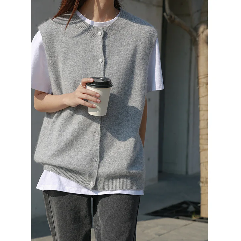 | Sweater Vest O-Neck Casual Single Breasted Solid Gray Womens Knitted Cardigans with Sleeveless Blend 2020 Spring |