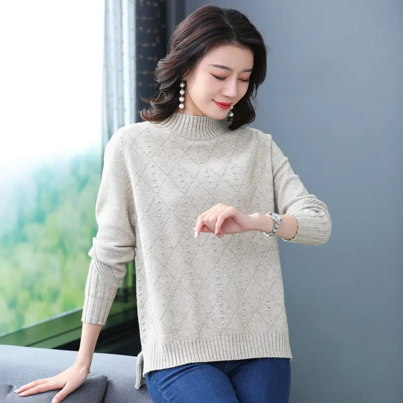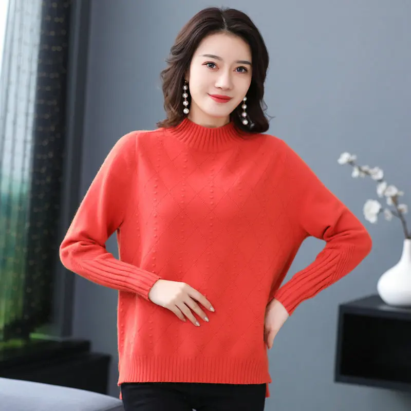 Turtleneck Winter 2019 Womans Sweaters with Batwing Sleeve Vintage Solid 50% Wool Blend Womens New Arrival Sweaters