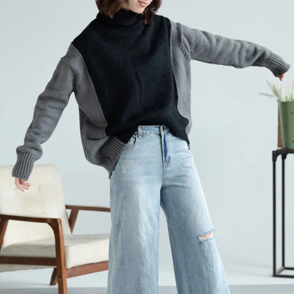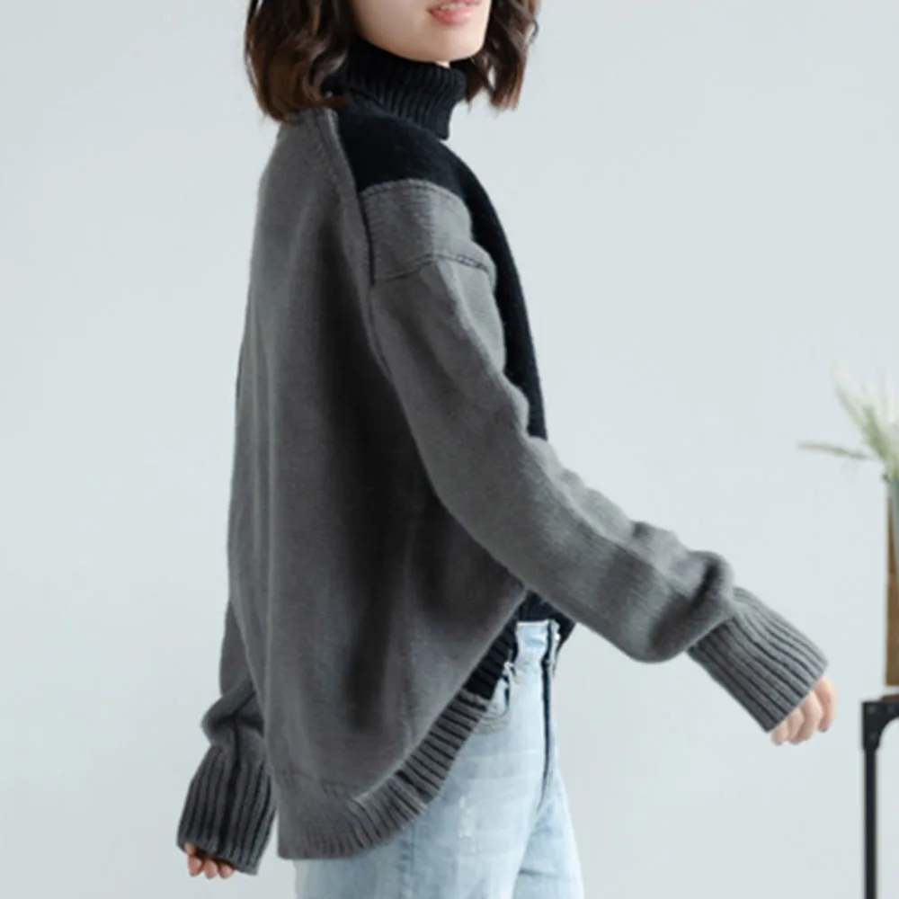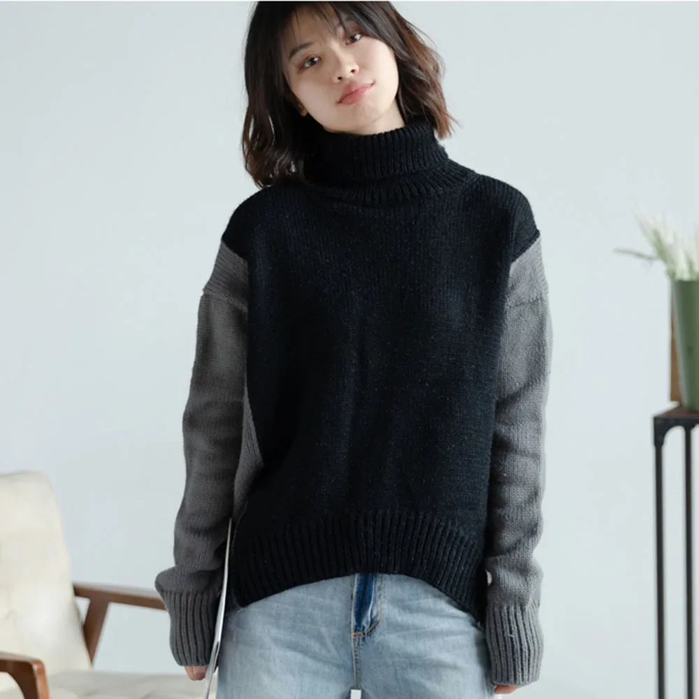 | Turtleneck Knitted Sweater Women Korean Elegant Long Sleeve Patchwrock Causal Pullovers Tops Spring Knitwear |