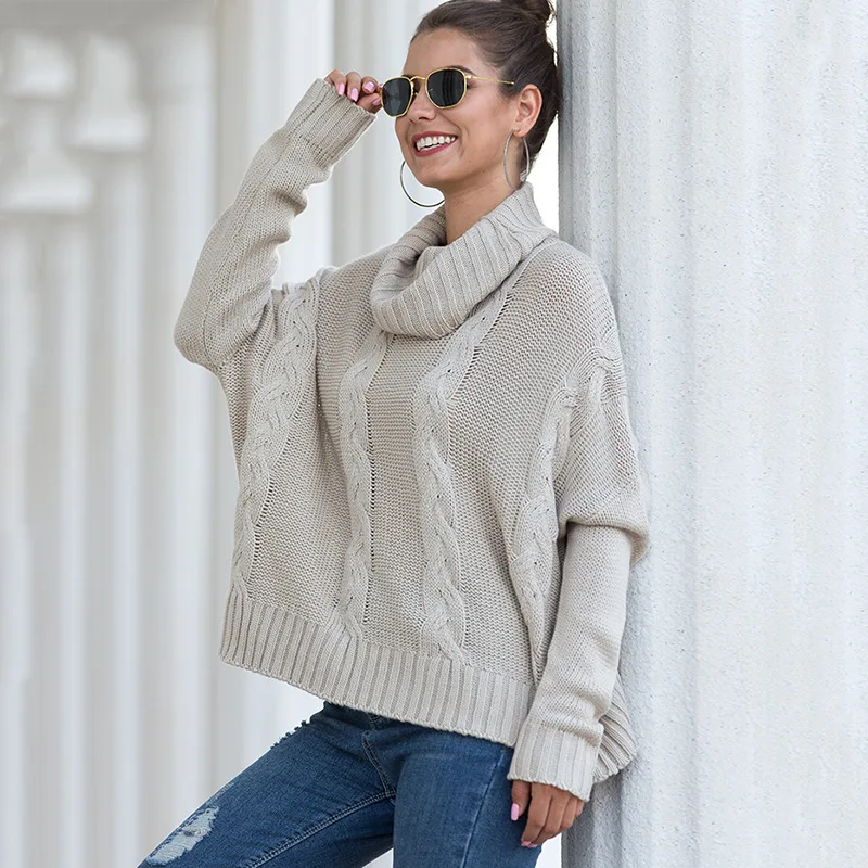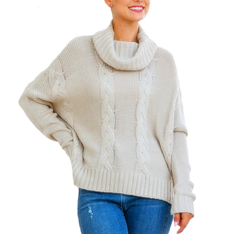 Turtleneck Knitted Pullover Sweater women Twist Plus Size Elegant Loose Fit Pullover and Sweater 2019 Autumn Winter Female Tops