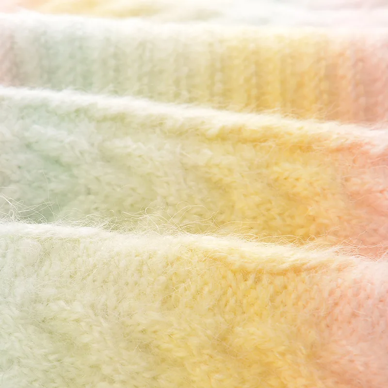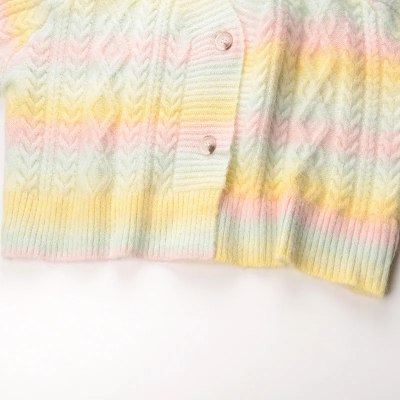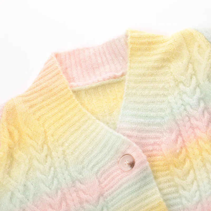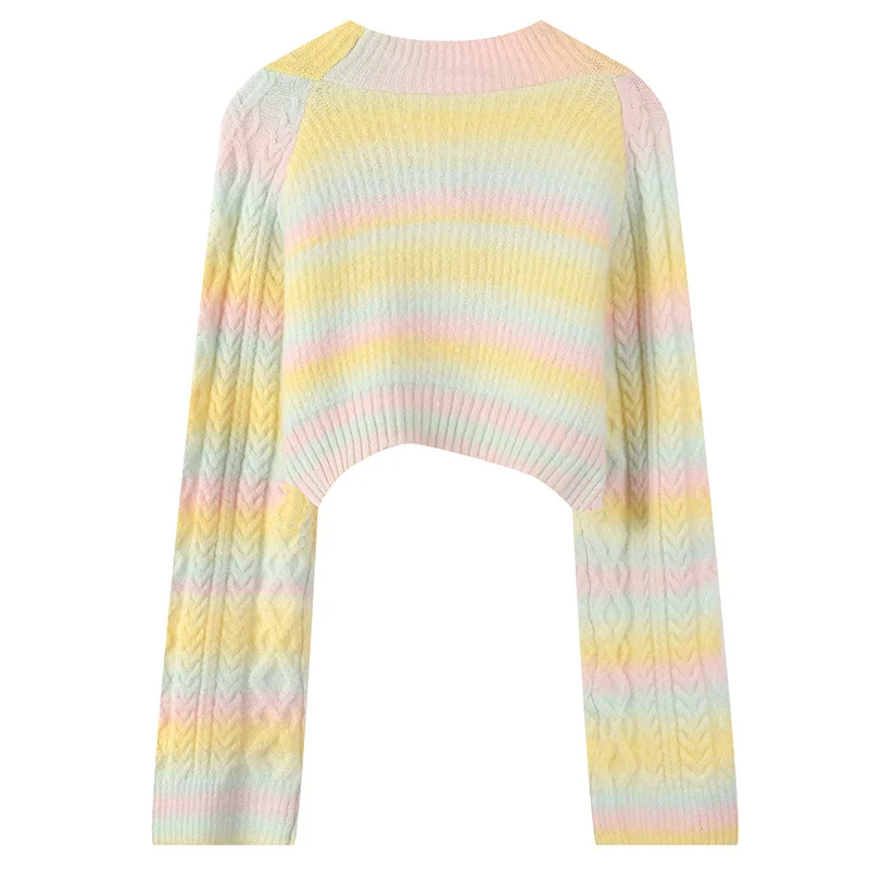 | Women Cardigan Short Loose Rainbow Striped Knitted Sweater Coat Color Block Crop Top Twist Long Sleeve Button Outwear Winter |