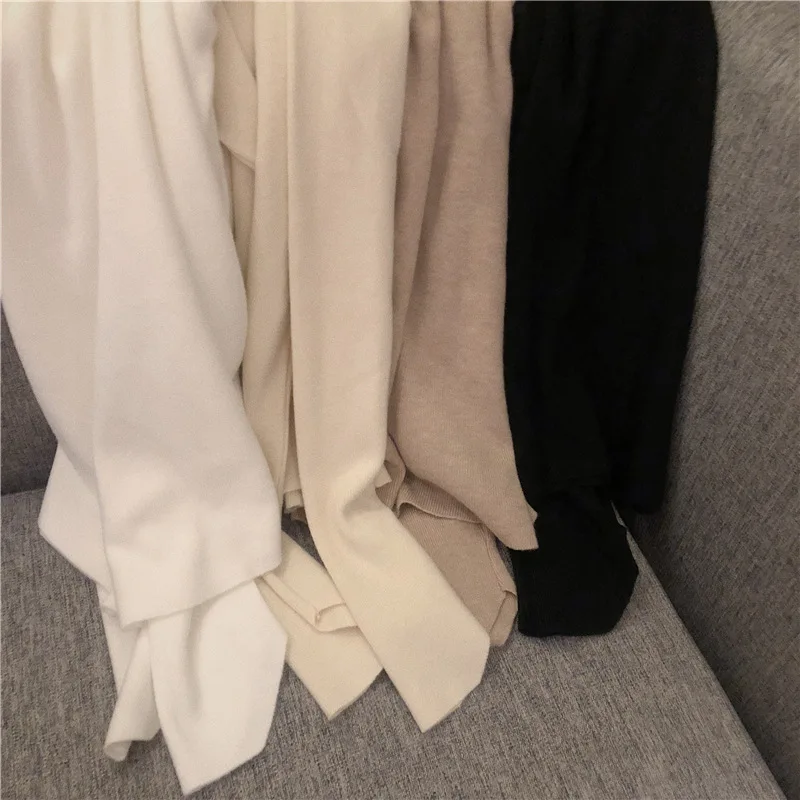 Turtleneck Knitted Plain Sweater and Split Skirt Two Piece Solid Gray Korean High Neck Elegant 2PCS Ladies Knitwear Tops WarmBuy Now On Aliexpress