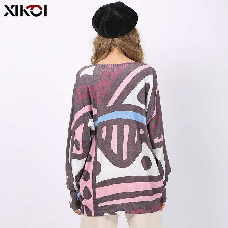XIKOI New Retro Print Sweaters For Women Winter Warm Long Sleeves Pullovers Oversized Bohemian Style Jumper Tops Pull Femme