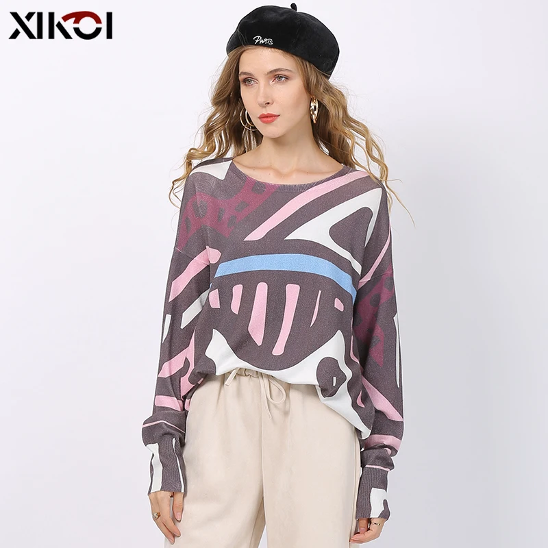 2019 Sweater Women Solid Geometri Pattern Casual Tops Knitwear Winter Long Sleeve Clothes Jumper Sweaters Pull Femme PulloverBuy Now On Aliexpress