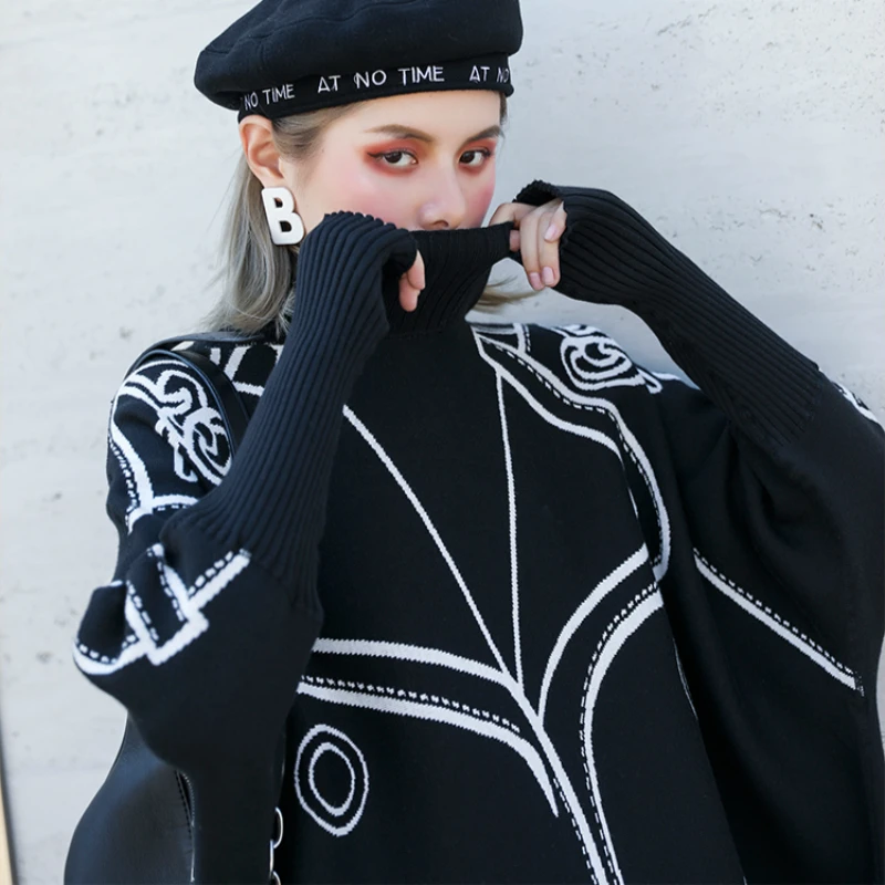 Big Size Knitting Sweater Women Pattern Loose Fit 12 Turtleneck Bat Long Sleeve Female Sweater New Fashion Autumn Winter 2019