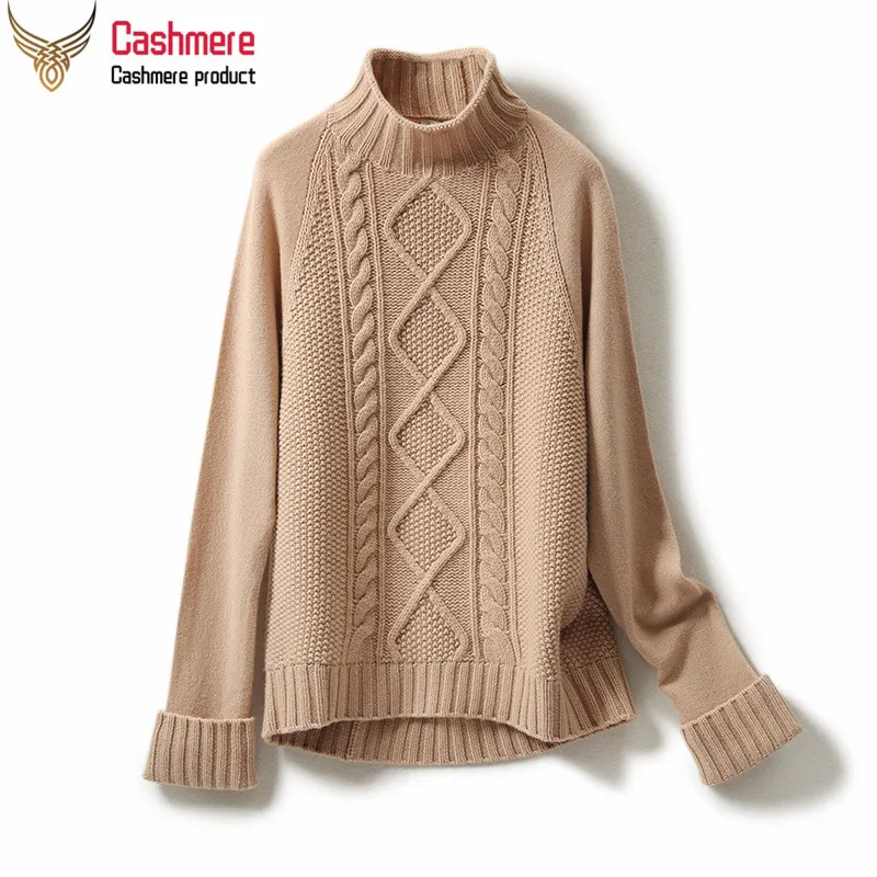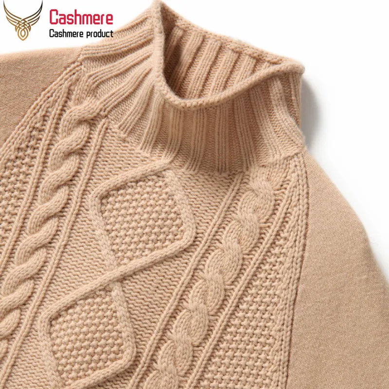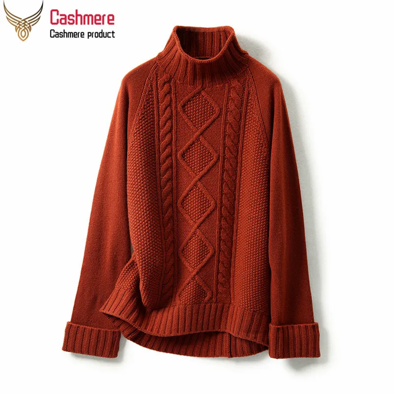Cashmere sweater women retro twist pattern sweater 2019 autumn new half-high collar casual red sweater women |