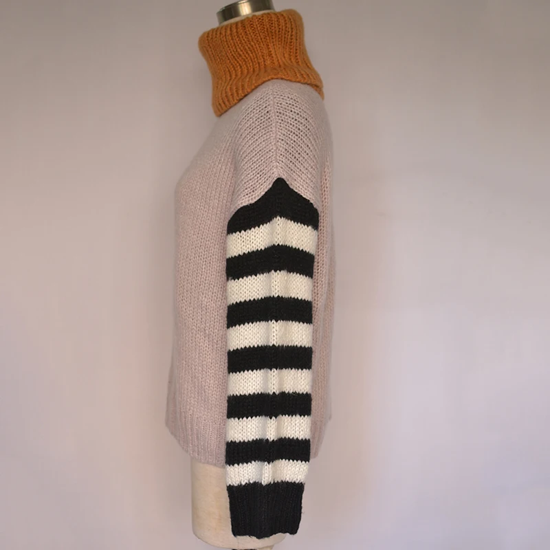 QUEVOON Fashion Turtleneck Sweaters Patchwork Striped Sleeve Knitted Pullovers Casual Sweaters Women New 2019 Jumpers Streetwear |