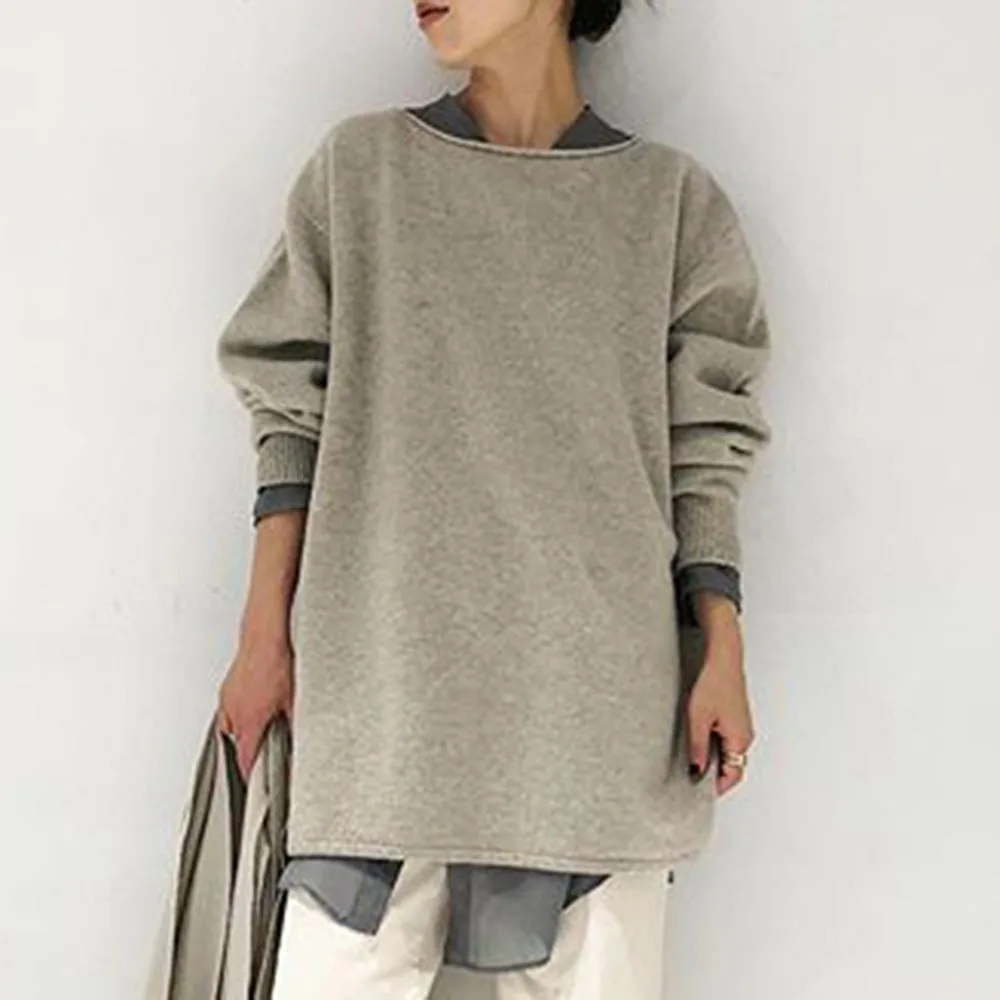 Knitted Sweater Women Korean Fake Two Piece Patchwork Pullovers Retro Jumpers Oversized Knit Wear Preppy Style Female Tops Gray |