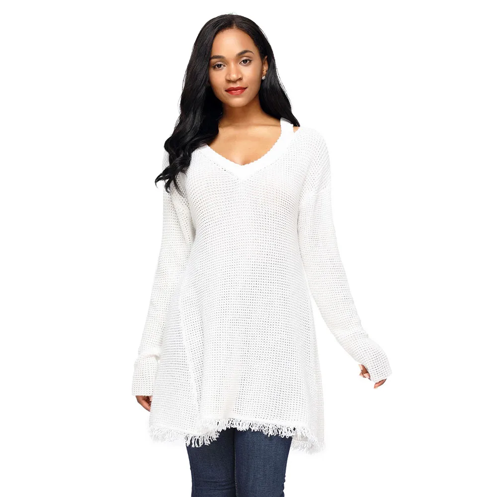 SEBOWEL Warm Autumn Winter Woman V Neck Waffle Knit Sweater Tassel Hem Female Long Sleeve Knitwear Basic Tops Sweaters S-XXL |