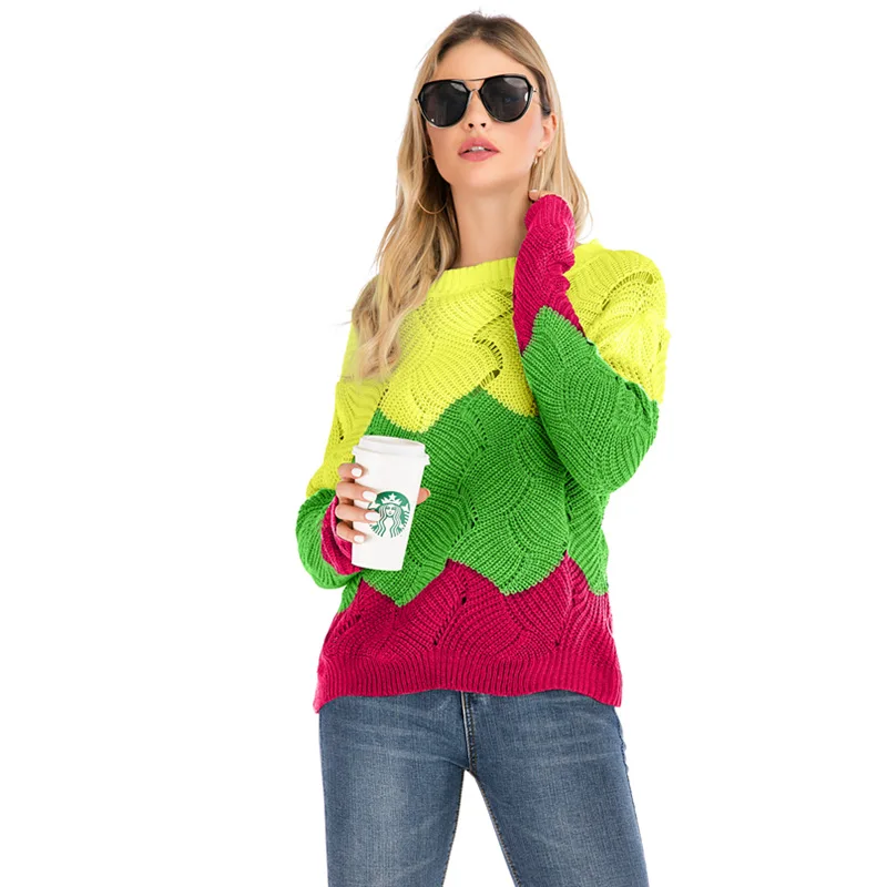 Sexy & Club Designer Patchwork Womens New Arrival Sweaters Women Tops Winter 2019 Fashion Pullover with Long Sleeve