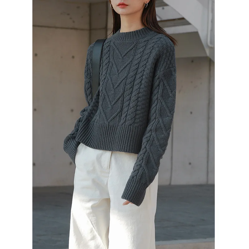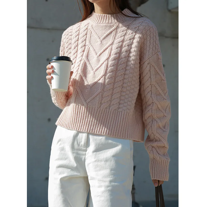 | Geometric Knitted Sweaters for Women 70% Wool O-Neck Casual Jersey De Mujer Invierno Fashion Pullover Pink Red Gray |