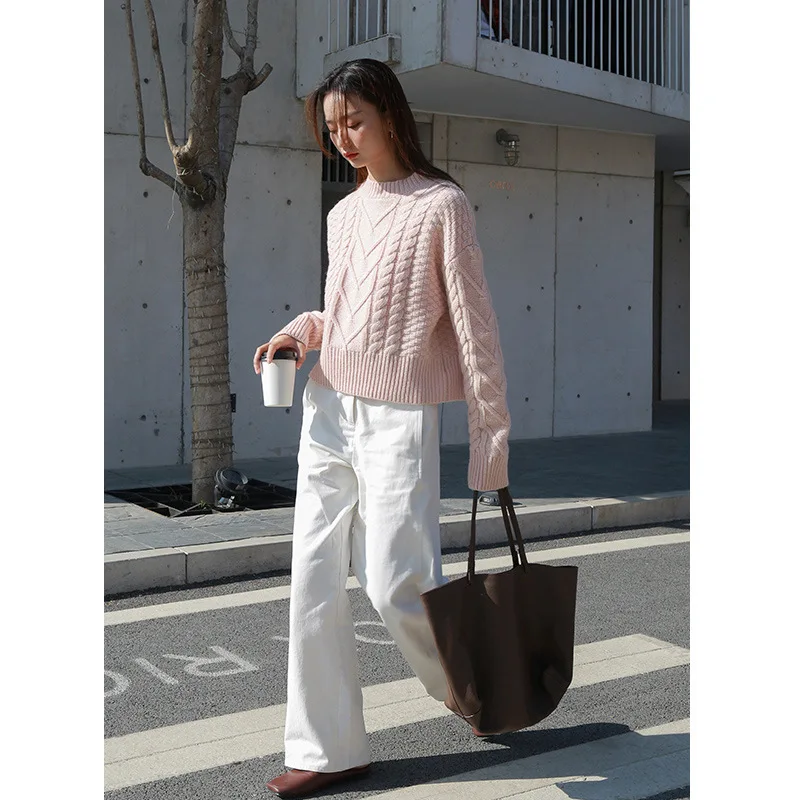 White Turtleneck Sweater Korean Fashion Ladies Cropped Long Sleeve Knitting Solid Pullover And Jumper Warm Sweater Hot Sale