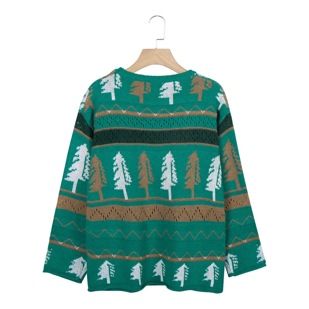 Hot New Year Christmas Knit Sweaters Long Sleeve Round Neck Blue Leisure Loose Plus Size Sweaters Fall Causal Sweater Pullover